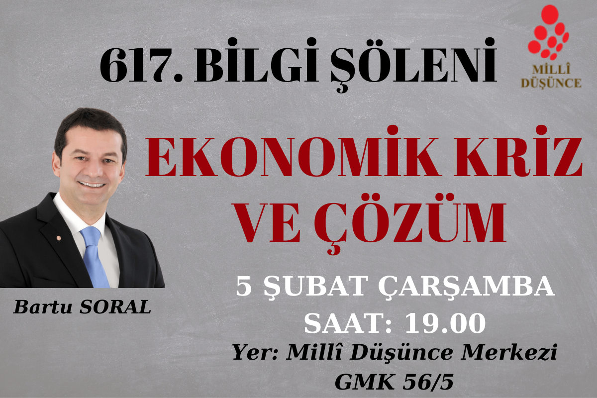 Manevî sarsıntılar yaşadığımız ülkemizde ne yazık ki sorunlar bununla sınırlı kalmıyor ve milletimiz derin bir ekonomik buhranın pençesinde kıvranıyor. Bilgi Şöleni’nde bu hafta Bartu Soral’la ekonomik krizi ve bu krizden çıkış yollarını konuşacağız. 5 Şubat Çarşamba günü gerçekleşecek programımıza hepiniz davetlisiniz.